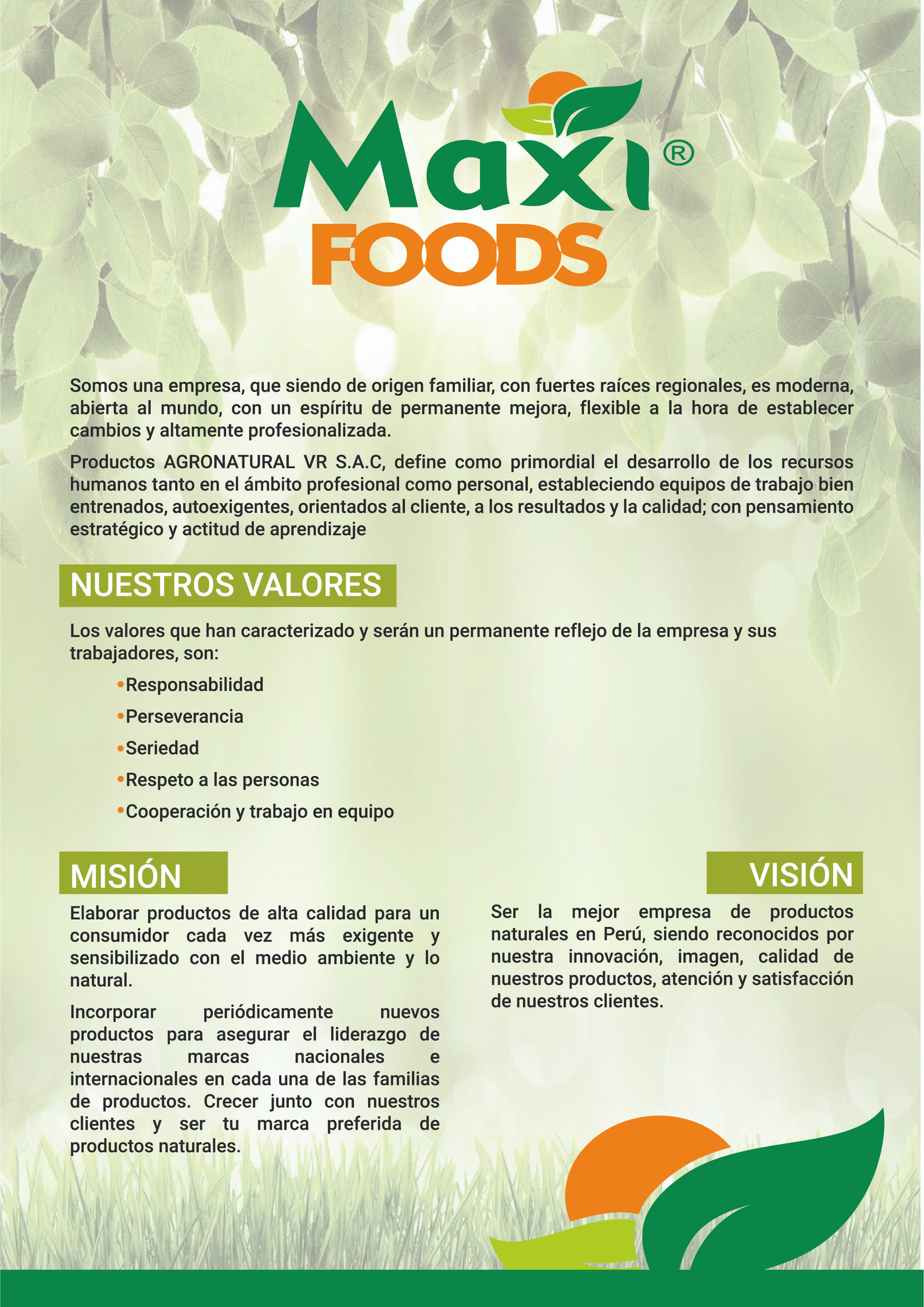 Ser líderes en Comercialización de granos secos, tanto, en el país, como a nivel mundial. Ser un socio competente tanto para los productores, como para nuestro publico, es parte de la meta en el marco de nuestra actividad comercial. La vasta experiencia que hemos acumulado a lo largo de los años en la comercialización de granos secos, así como nuestros conocimientos específicos en el área, nos convierten en su mejor opción de compra para nuestros clientes que se extiende por todo el Perú